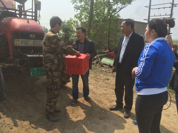 4月29日上午,几位村干部和钱文虎在窑河村挨家挨户募集钱款,三五十、一两百,村民们纷纷向捐款箱里投去爱心款,有的村民在捐款的同时还不忘对钱文虎说上一句暖心的话:“希望你的女儿早日康复!”