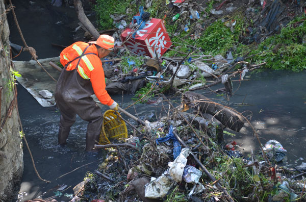 田区环卫工人利用假期清理龙王沟和洞化水系