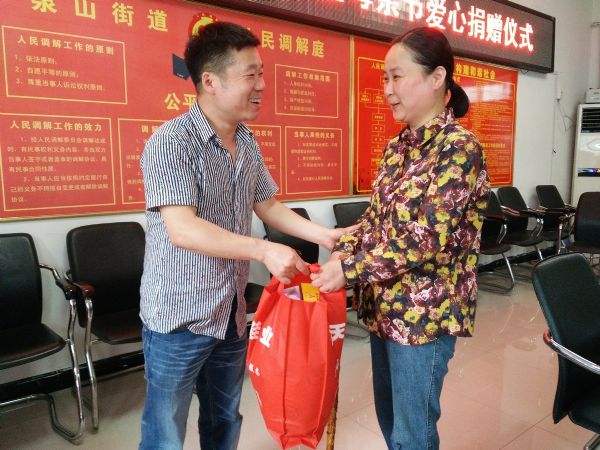 让每一位母亲享受节日的欢乐,让每一位困难母亲感受社会主义和谐社会的温暖。母亲节前夕,泉山街道会议室里,来自泉山街道3个社区的45位母亲收到了节日祝福和装有布鞋、拖鞋、毛巾、牙膏、花露水、香皂、袜子、面巾纸、洗衣粉、洗洁净等生活用品的“贴心包”。