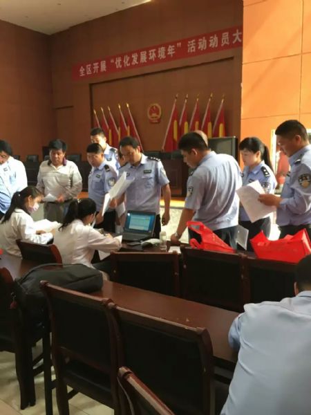 图一: 民警排队递交登记表准备献血