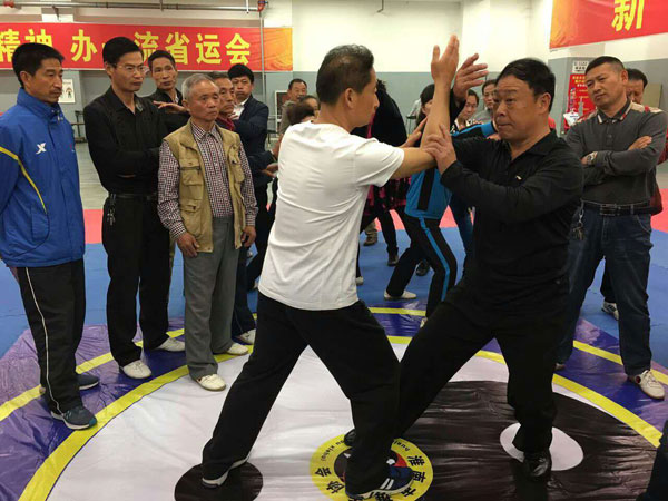 据了解,此次培训的目的是针对太极拳推手比赛新规则,让爱好者进行规范训练,提升整体技术水平,以便在将来的比赛中赛出好成绩。同时,名家现场指导,激发了参学者的兴趣和自信。