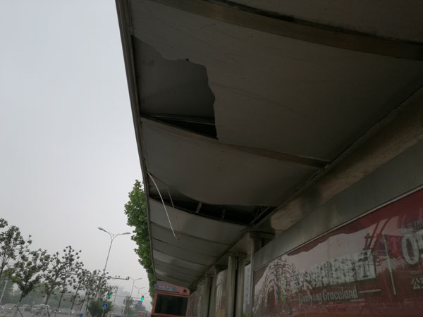 图:公交站台受损的雨篷