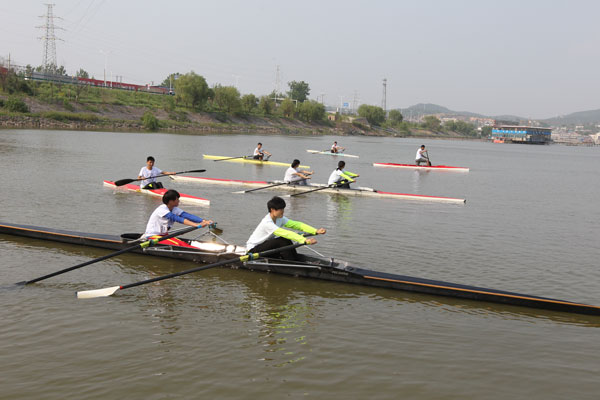 我市运动员正在积极为备战“省十四运”而加紧训练。5月11日,上窑高塘湖,我市赛艇和皮划艇队健儿正劈波斩浪,一艘艘赛艇犹如飞鱼一般在湖面穿梭,他们力争此次运动会创造佳绩。训练馆里,散打运动员们摆拳、勾拳、劈腿、低勾腿……一招一式,有板有眼,凝结了队员们艰辛的付出。