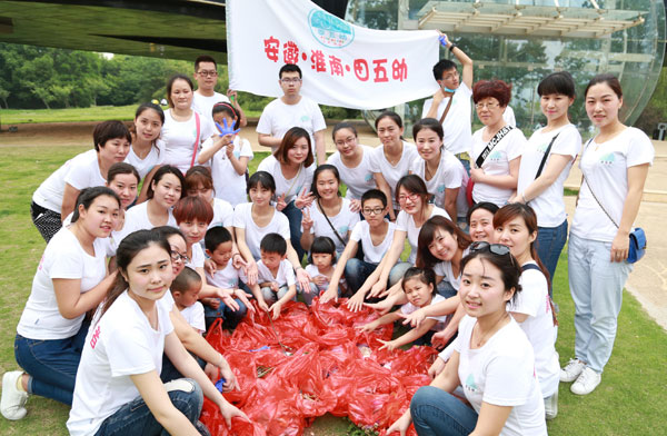 淮河早报、淮南网记者了解到这些身穿“志愿者”短袖衫的环保舞者由田五幼淮河新城园教师、该园幼儿及其家长组成,人数30余人。他们自舜耕山北麓出发,步行至山南“两琴相悦”游园内,沿路捡拾路人、游客随手乱丢的垃圾。在山下一处临时停车场内,志愿者们在不到五分钟的时间里,捡起的饮料瓶、卫生纸、塑料袋、烟头等垃圾足足装了三大包。一名游客看着弯腰捡垃圾的小朋友,赞许地说:人家小孩子都知道爱护环境,那些乱丢垃圾的人看着不脸红吗?