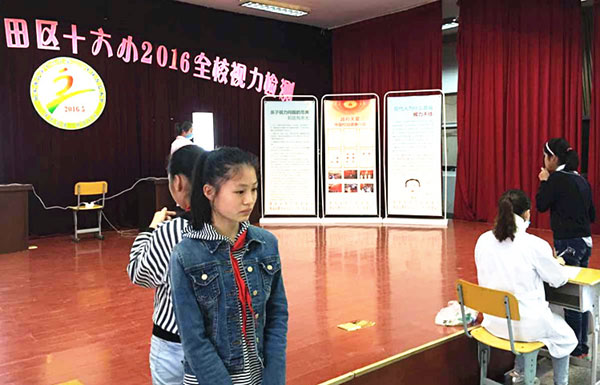 淮南市第一次进行的大规模视力检测活动于5月16日在田家庵区第十六小学暂告一段落。通过4天对全校46个班级2606名学生的检测,结果表明:50%的学生视力存在着不同程度的问题。