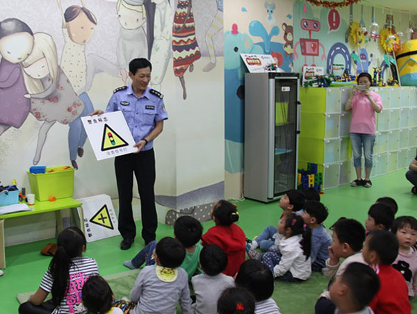 活动中,根据幼儿年龄特点和认知特征,民警利用漫画展板、幼儿交通安全知识幻灯片等宣传形式,向幼儿讲解了在行走、过马路、乘车中需要注意的安全问题,自觉遵守道路交通法规,请家长和小朋友拒乘报废车、超员车、无牌证车辆和三轮汽车、拖拉机、低速货车、机械性能不良的车辆,传授交通安全自我防护和交通事故自救常识等。