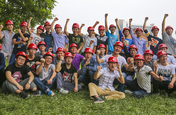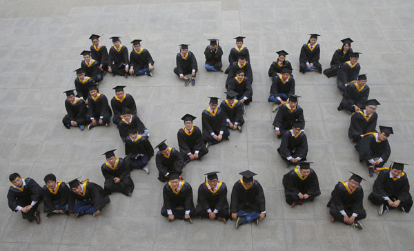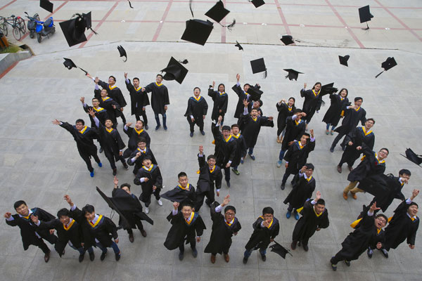 5月20日,安徽理工大学即将毕业的大学生在校园里拍合影。当日,安徽理工大学“告别老校区,青春我飞扬”活动正式启动,6000多名硕士、本科生在老校区拍照留念。据了解,2016年秋季新生将在山南新校区报到入学。