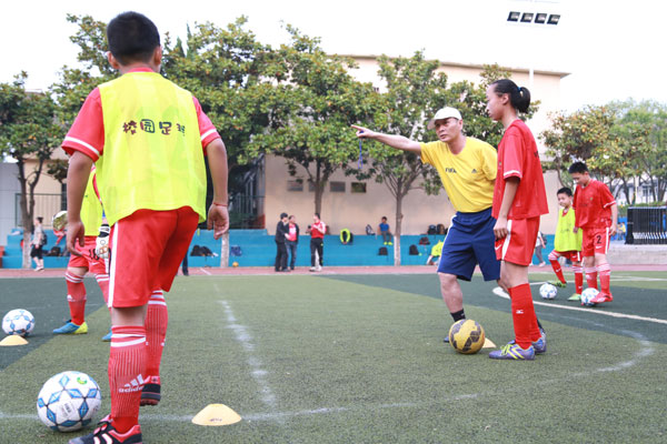 5月19日下午,田区十八小的足球场上迎来一位重量级的教练——亚足联A级教练、中国足协教练员讲师万江鸣。他一个小时的现场指导,使得小球员和体育老师们对足球的训法、练法有了新的认识。