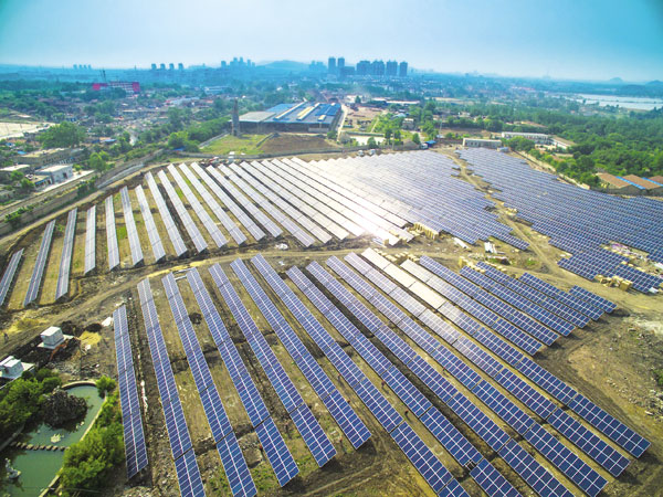 空中鸟瞰建设中的淮南矿业集团公司李一光伏电站项目。目前,该项目光伏板铺装已超过80%,预计6月底并网发电。为大力发展清洁能源,盘活塌陷区土地资源,淮南矿业在李一、孔李两座废弃煤矿塌陷区建设光伏电站,累计发电装机23.6MW。据了解,该集团公司新庄孜电厂老厂灰场光伏项目和潘二矿塌陷区水面光伏项目建设正在启动中,新能源的注入将给企业带来新动力。