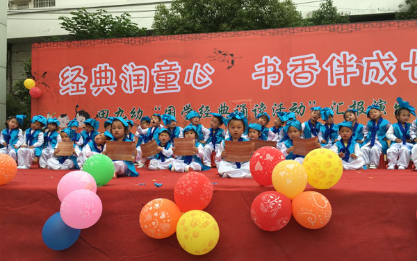 为了更好地传承中华文明,让孩子从小在经典中浸润心灵,从故事内涵中学习到做人做事的道理,田九幼特别举办了这场国学经典诵读活动。活动中,淮河早报、淮南网记者看到,近400名幼儿们或是以一个班级为集体朗读《三字经》的精彩章节,或是和家长一起表演从《三字经》中衍生出的国学经典故事等,节目内容让人目不暇接。