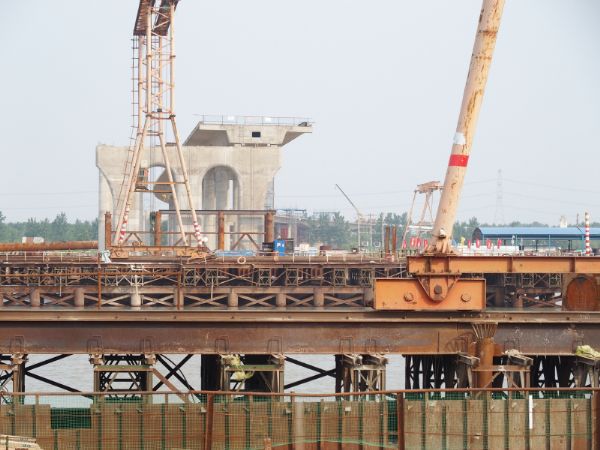 据了解,淮上淮河大桥南、北2个主桥墩、柱施工至7月底结束。目前,淮上淮河大桥主桥施工进入加速期。