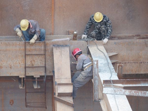 5月下旬,淮河早报、淮南网记者在淮上淮河大桥工地看到,淮河主航道南、北两侧竖立着2个巨大的钢围堰,钢围堰把淮河水隔开,目前正在实施39#、40#2个主桥墩的混凝土浇筑干法施工。