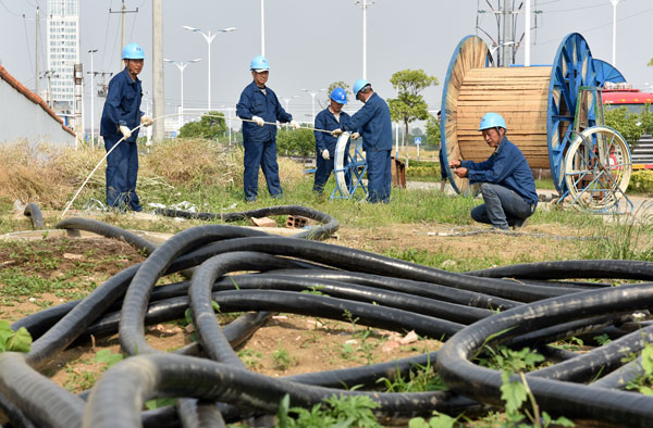 安徽理工大学新校区是省“861”项目和市重点工程,一期建筑面积约74万平方米,工程将于今年6月底竣工。为保障9月份该校区顺利开学,淮南供电公司调集70多人的施工队伍,连日来全天候奋战在近5公里的施工现场,敷设两回路主供电源10公里电缆线路、安装8台环网柜、9台分支箱、6基水泥杆、1400米架空绝缘线等设施设备,全面完成市政府下达的艰巨任务。