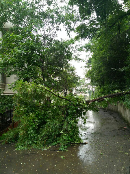 接到刘女士的反映后,淮河早报、淮南网记者来到了紫金华庭小区,在小区东围墙边,看到这棵横倒在路面上的大树。原来该围墙是一处斜坡,上面并没有做硬化处理。倒下来的大树正好生长在斜坡上,从根部断裂,横卧在路中央,把整条道路截断了。据附近居民介绍,因为没有采取一定的措施,东围墙这边发生坍塌、大树歪倒已经不只一次了。现在居民们都很担心,万一再次发生类似情况,居民的人身和财产安全如何保障?尤其马上就要进入多雨的夏季,他们希望有关部门能重视该小区存在的安全隐患,尽快对其进行整改,让居民能住得安心、住得舒心。