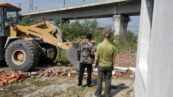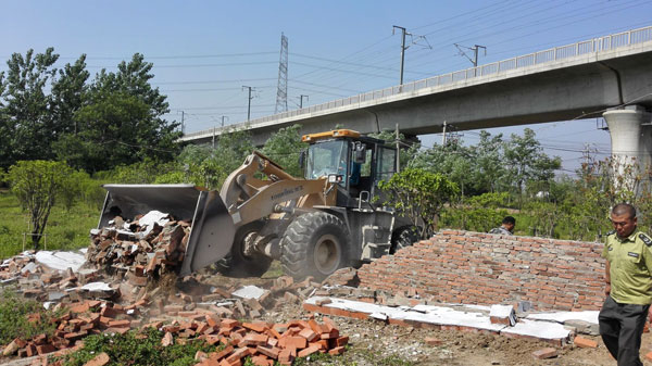 图为高速引线桥下拆除现场。