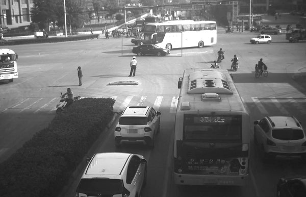 图:轿车闯红灯差点与公交车相撞