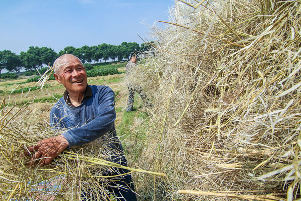 5月25日上午,安成镇沿淮村田间,农民们正赶在晴天收割油菜。农户徐先生告诉淮河早报、淮南网记者,眼看要午收了,听天气预报说即将有雨,自己家二三亩地的油菜要赶在下雨前完成收割,不然会影响产量。今年徐先生大约能收获二百公斤左右的油菜籽。据了解,油菜是比较适合沿淮村地理条件的农作物,很多农户都会在地里田间种植一部分的油菜,收获的油菜籽可以榨成油自己食用,也可以出售。