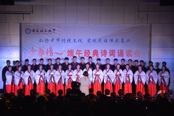 5月27日晚,安徽理工大学团委组织600多名师生齐聚安理大北校区,以身着汉服、朗诵屈原作品的方式体验了一次“古色古香”的端午节,弘扬中国传统文化精髓,吸引大学生了解并重视中国传统节日。