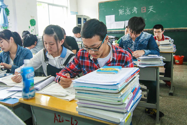 25日下午,淮南三中高三17班的同学们正在呐喊助威,为高考加油。据校方了解,高考临近,这是班里组织的考前疏压活动,用呐喊的方式缓解高考压力,放松考前气氛,用相互鼓励的方式增强考生的自信。