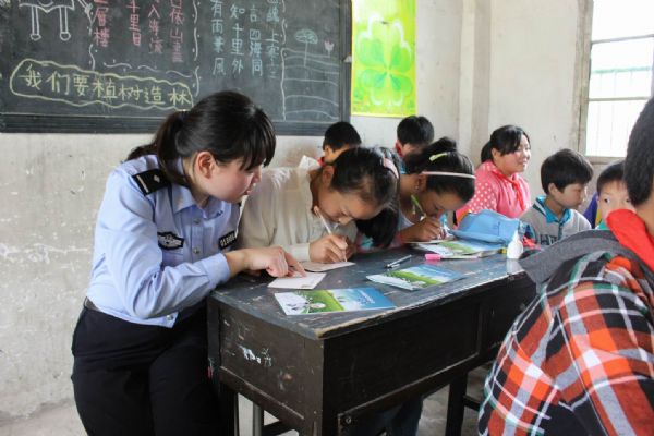 青年民警来到塘前小学后,为学生们上了一堂日常安全教育课,并发放了明信片,让学生们将心中对爸爸妈妈的思念和祝愿写在明信片上,寄给远方的爸爸妈妈。随后,民警们将崭新的书包和募捐来的课本、玩具赠送给20名家庭贫困的留守儿童,孩子们脸上洋溢着幸福的笑容。