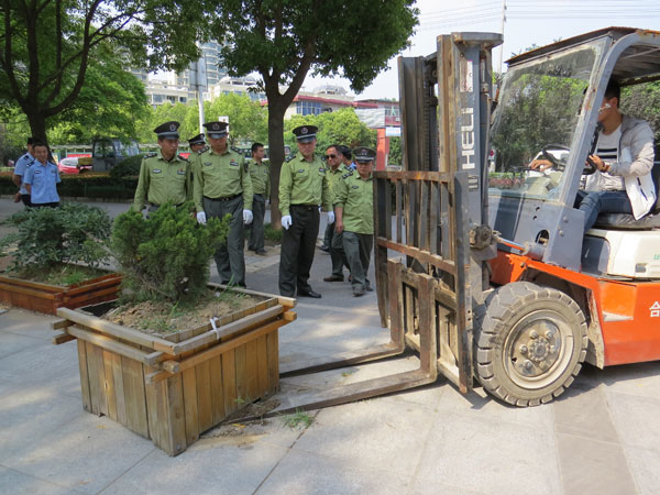 排查中,执法人员发现,田大路附近设立的一处停车场问题最突出。在接到整改通知书后,当事人仍未按时整改。日前,开发区城管大队在公安、环卫、开发区实业公司等部门配合下,对这处停车场进行了集中清除,共清理简易活动房1处,擅自设置的占道隔离物40余个,各类杂物4车。出于安全考虑,还对清场后凸出路面的残留螺丝钉进行了清除。