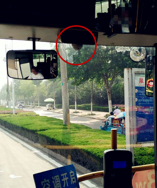 图一:公交车前置摄像头能够在行驶中将公交站台场景清楚拍下