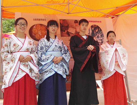 图一:游园会现场,学生们正在进行汉服的展示和介绍。