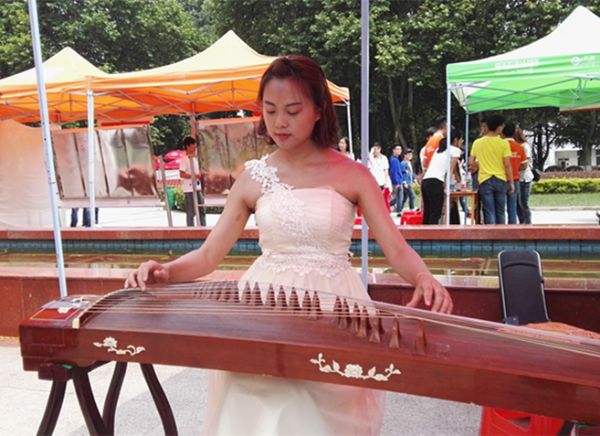 图二:游园会现场,学生正在进行古筝独奏。
