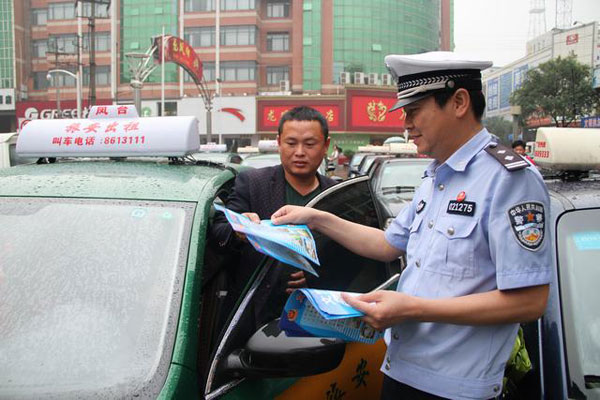 6月6日,凤台县公安局交管大队在县实验小学文化广场冒雨开展了爱心送考车辆交通安全宣传活动。参加凤台县第六届爱心送考志愿服务活动的志愿者代表,就今年高中考期间在爱心送考服务中自觉遵守交通安全法规、文明行车、安全送达每一位考生做了表态发言。县公安局交管大队现场进行了交通安全宣传提示。系上绿丝带,不忘安全行,民警们向参加仪式的出租车驾驶人发放了交通安全单页材料和文明出行倡议书。