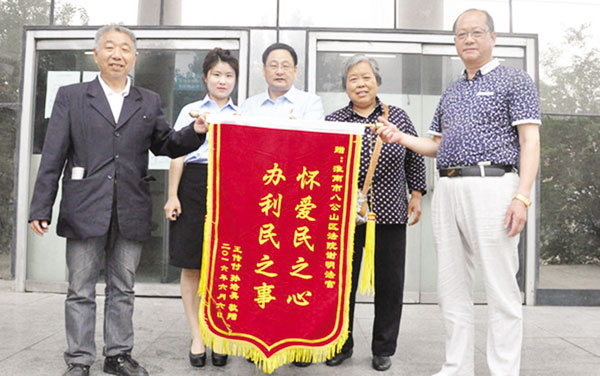 6月8日早上,八公山区人民法院门口响起了震耳欲聋的鞭炮声,当事人亲自将锦旗送到了法院门口,感激法官帮他们跨省追回了10万元的赔偿款。