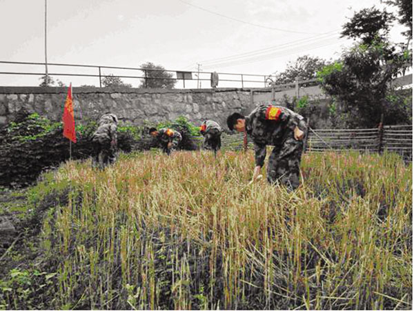 近日,随着夏收季节来临,禁烧秸秆工作迫在眉睫,田家庵区人武部注重发挥民兵突击队作用,指导各乡镇、街道武装部组织民兵应急分队积极参与秸秆禁烧工作,走上田间地头认真巡逻监控,及时排除隐患,帮助抢收抢种。图为淮滨街道民兵应急分队执行秸秆禁烧任务。