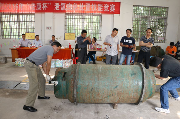 事情是这样的。按市总工会要求,6月8日下午,该公司在五水厂举办了泄氯应急处置技能竞赛。比赛共分为理论考试和现场操作两个环节,四个参赛水厂的选手参加比赛。整个竞赛过程中,参赛选手一丝不苟,沉着应对。特别是在实际操作中,针对针型阀泄漏、瓶身泄漏和易熔塞泄漏这三种情况,每组两位参赛选手紧密配合,及时用各种专业堵漏工具规范、快速地对氯罐泄漏点进行堵漏,堵漏前后都用氨水检测,演练过程严格有序,全面展现了选手熟练的专业技术和默契的团队协作能力。经过两轮比拼,最终五水厂和四水厂获得冠亚军。