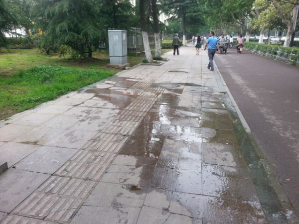 6月15日,有市民致电淮河早报热线,反映位于洞山中路老龙眼加油站旁,不断有污水从一处绿地中流到人行道上,脏臭难闻,有损市容环境,希望能及时处理。