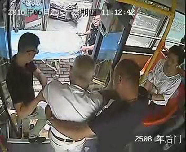 根据公交车上的监控视频显示,6月23日上午10时58分,一辆110路公交车行驶到洞山东路南侧的洞山中学公交站附近时,一位坐在车厢后排靠近后门位置的老人突发不适,倒在座椅上。坐在旁边的一位女乘客发现后,及时告诉了正在开车的驾驶员赵金虎。得知情况后,赵金虎赶紧将车靠边停下。