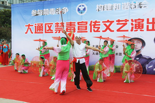 7月5日下午,由大通区禁毒委员会主办,大通街道老年艺术团协办的“大通区禁毒宣传文艺演出”在大通街道居南社区文化广场举行。演出前,大通区公安分局民警在演出现场摆放了禁毒宣传展板,并向行人发放了防毒品宣传资料。精彩纷呈的演出,不仅给广大观众带来了新鲜的视听享受,更切实提高了群众自觉学法、守法和珍爱生命、拒绝毒品的意识。大通区禁毒委的全体人员与数百名群众观看了演出。