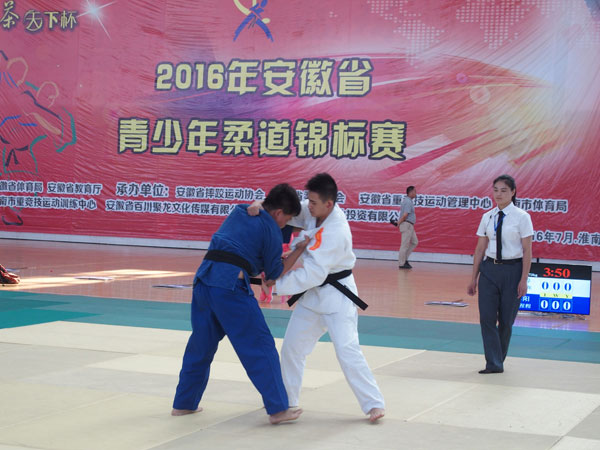 7月17日上午,2016年安徽省青少年柔道锦标赛在淮南市体育文化中心开赛,全省共计13个代表队的366名运动员将进行为期4天的比赛,其中,东道主淮南市代表队共派出22名男、女运动员参赛。