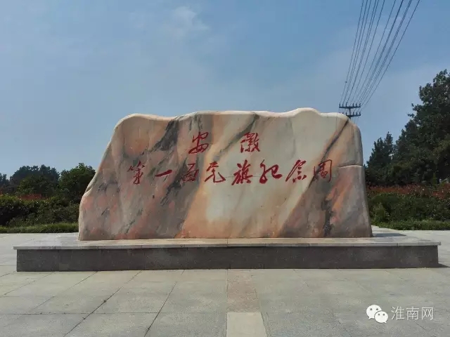 大约一个半小时的行程,大巴车进入小甸镇境内,远远望见一处园林式的建筑出现在路旁,首先映入眼帘的是“安徽第一面党旗纪念园”石碑,背后是一座纪念碑高耸在苍松翠柏之间。走近一看,正是小甸集“特支”旧址、安徽第一面党旗纪念园。