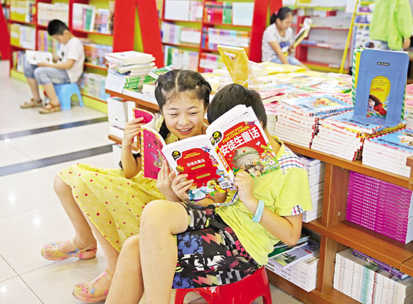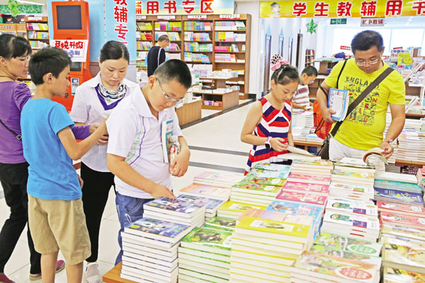 7月20日,中小学生在淮南书城翻阅图书。暑假期间,我市许多中小学生在亲人或同伴的陪同下走进图书城、新华书店等阅读场所,畅游书海、享受阅读的快乐。炎炎夏日,书店成为广大中小学生读书、避暑好去处。