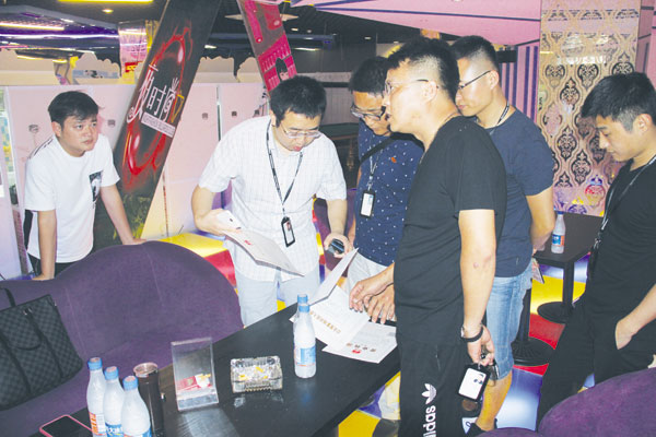 图:执法人员在“再起风云”电玩城内检查