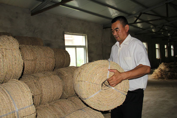 张家全调查后了解到,草绳加工成本低廉、生产简单、收益较高,非常适合农村目前的生产经营。看准这一项目,张家全于2015年7月投资40余万元,成立了凤台县北新秸秆综合利用有限公司,购置草绳机30多台,回收刘楼、圩西、米吴、钱庙等村稻草1000余吨,然后将秸秆加工成草绳、草帘等,他的产品远销湖南、山东、江苏、山西、浙江和安徽省各地,用于园林绿化、蔬菜保暖和工业产品包装垫层等方面,广受市场欢迎。