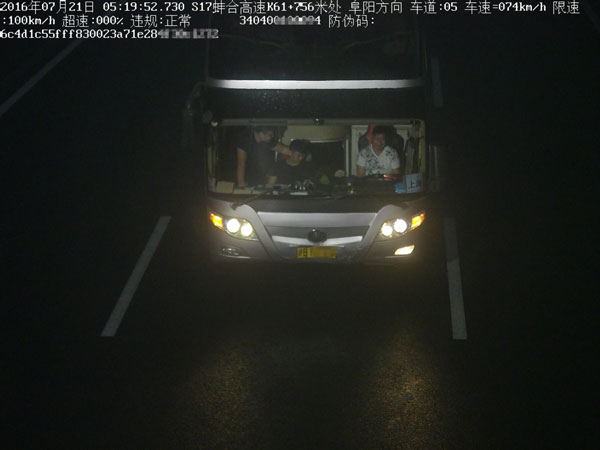 图为卡口拍摄到的客车照片。