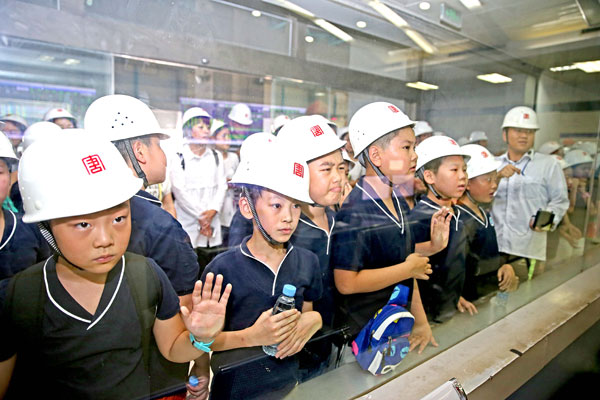 7月26日,小学生们兴致勃勃地参观大唐淮南洛河电厂生产车间。当日,大唐淮南洛河电厂举办了中国电力主题日暨集团公司第十届企业开放日活动,近50多名小学生和家长围绕着“创新驱动智慧共享”的活动主题,走进厂区和生产车间实地了解企业发展历程和安全生产发电过程、感受现代化能源企业风采。