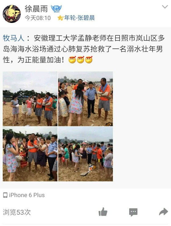 图二:QQ空间、朋友圈里早已被孟静日照救人的消息刷爆。