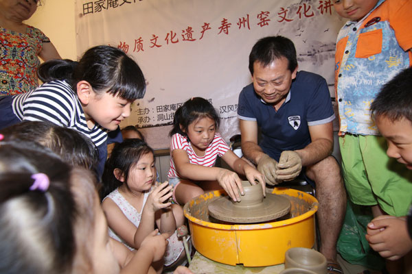 近日,在田家庵区洞山街道新村社区,寿州窑技艺传人和孩子们一起制作陶艺。暑假期间,该区委宣传部在辖区范围内广泛开展“传统文化进社区 近距离接触淮南非遗”系列活动,通过陶艺制作、茶道品鉴等系列活动,让中小学生感受传统文化,旨在打造特色文化品牌,提高民众对非物质文化遗产的保护意识。