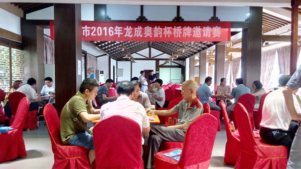 在里约奥运会各项赛事如火如荼展开之际,近日,由淮南市棋牌协会和淮南市桥牌协会联合主办的2016年淮南“龙成奥韵”杯桥牌邀请赛,在依山傍水、风光旖旎的舜耕山庄开叫。来自四川、河南、江苏及本省6个地区的6支代表队参加了这次比赛,比赛实行单循环制,经过5轮60副牌的激烈角逐,淮南八公山队、徐州彭城桥友队和淮南快乐群队分获前三名。