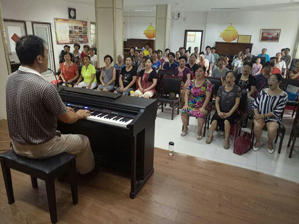 图:社区居民练习声乐基本功