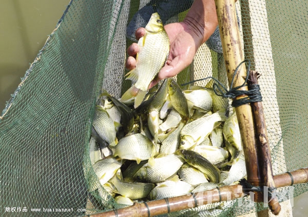 8月25日,寿县迎河镇绿园特种水产生态养殖基地的工人们正在捕捞泥鳅和鱼苗湘云鲫。据了解,该基地按照公司+合作社+特种养殖的现代农业产业化联合体模式经营,养殖采用国际先进的低碳高效池塘循环水技术,极大提高了资源利用率,目前基地拥有南美白对虾、湘云鲫、台鳅等10余个品种,产品远销南京、常州、上海等地,年产值2000多万元,带动周边20多个合作社万亩水产养殖增收。记者 倪 军 摄