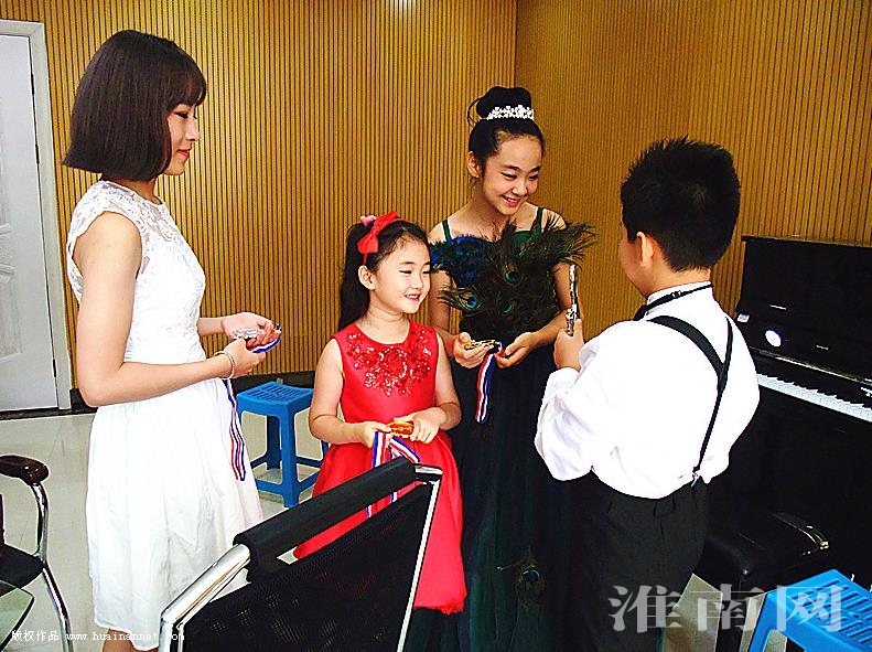 今年7月份,经过海选,该校有5名选手通过了预赛,8月21日,5名选手代表淮南,参加了在香港举办的总决赛。经过一番激烈的角逐,金熙然获得幼儿钢琴组的金奖、张一诺获得少儿钢琴组的金奖、孙婧如获得青年钢琴组的银奖、林陆阳获得儿童钢琴组的第二名、王楠熙获得幼儿钢琴组的铜奖。该校也获得2016年中国百强音乐教学机构称号。8月28日,他们一行才回到淮南。