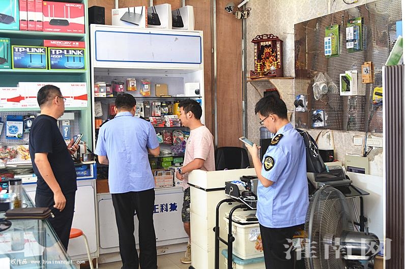 (记者 冉韬)近日,八公山公安分局经侦大队联合八公山市场监督局、八公山烟草局组成联合执法组,突击对辖区内的29家网店、微店经营场所进行检查,有力地打击了侵权假冒行为,促进辖区网店、微店健康发展,受到了群众广泛的称赞。