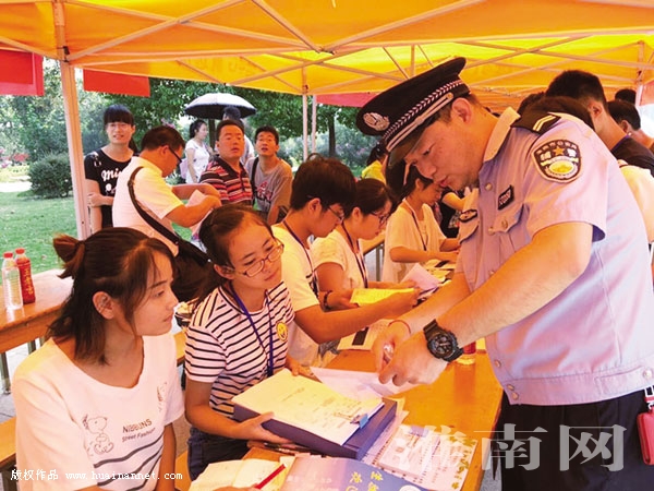 为全面提高广大师生的防诈骗意识,9月10日,田家庵公安分局治安大队民警走进淮南师范学院、淮南联大,利用新生报到之际开展了一场“开学季”防诈骗安全防范宣传活动,为学生防骗“支招”,警校联手编织校园立体防骗网。